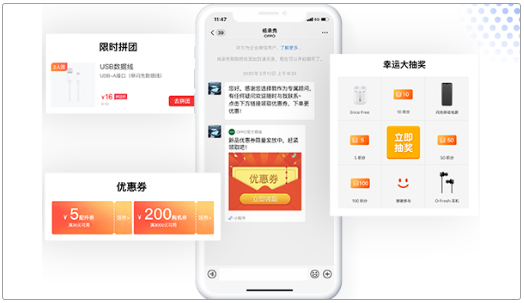 企微SCRM为商家提供全链路营销闭环,让老用户找新用户,潜客变首次下单,首次下单变复购,复购变增购,循环往复使商家实现持续增长。首先,企微从全网汇集客户线索。这些浏览了品牌信息的用户会留下很多痕迹,比如聊天会话、订单记录、行为喜好。企微云可以根据得到的信息建立用户画像,给用户分层、做精细化营销,以一些优惠和权益等手段吸引老客增购复购,并通过分享裂变实现一带多、老带新,挖掘客户价值。