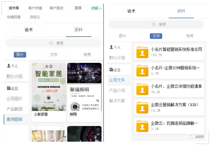 基于小名片的大数据平台与企业微信提供的API能力,企微云为企业赋能,帮助企业沉淀与经营企业的客户池。