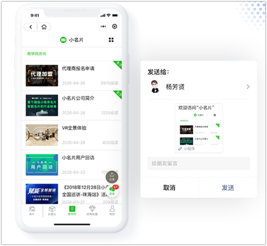专业的形象容易被信任,是成交的前提。企微云小名片模块,为每个员工搭建个人主页,支持一键转发。个人名片跟官网商城链接,产品资讯,公司介绍,品牌商城跟随名片一起递给客户。员工可通过分享与产品相关、新闻资讯、优质的行业报告与方案等内容,打造个人IP形象。客户转介绍时一键转发名片,人脉快速裂变。