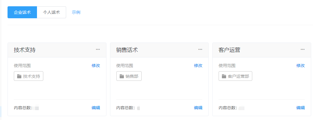比如针对售前的话术,我们可以将权限开放给销售、售前支持等部门;针对售后服务的,可将话术权限开放给客户运营、售后客服等部门。每套话术都是可独立管理的,操作效率更高。