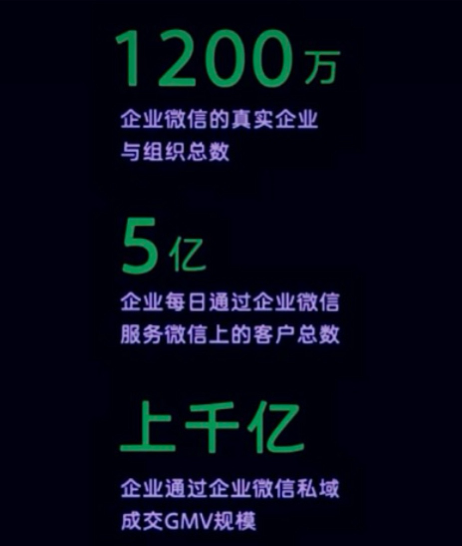 最新微信公开课PRO上,企业微信总经理黄铁鸣公布说,此刻已有1200万公司在运用企业微信,每天至少服务着5亿用户。过去一年(2022年),企业通过企业微信运营私域的成交GMV规模上千亿。
