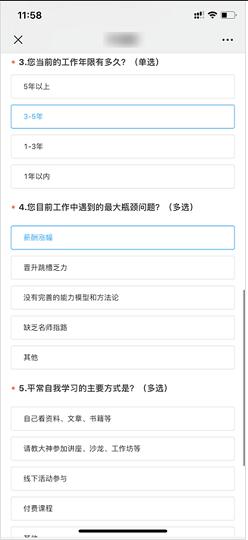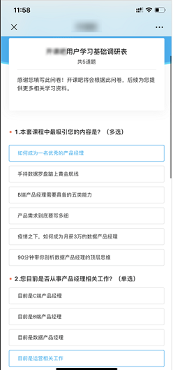 当用户填写完毕,他们会根据调查问卷中信息,把不同类型的用户匹配给不同的客服。比如通过问卷测算出来,学员的水平属于小白阶段,那么这个小白学员就会被分配到专门负责入门课的班主任手上,有针对性地授课并做进一步的转化。