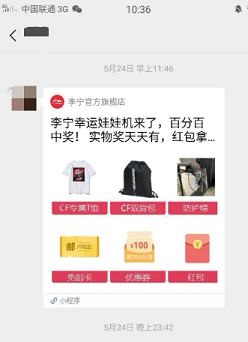 每天跟人都在聊转化,聊深挖顾客价值, 最近我倒是被别人转化了….事情的起因是朋友的一个分享链接,点进去是国潮李宁在小程序办的抽奖活动。
