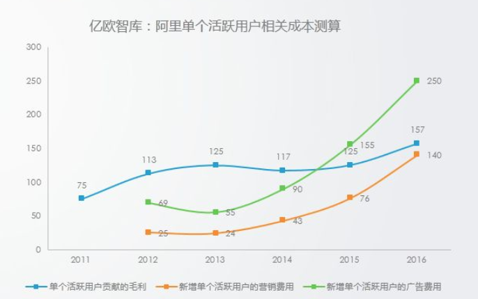 从图上可以看到,前几年开始,大趋势上网络零售的渗透率增速在不断收敛,到2020年几乎已经到达天花板。随着互联网用户的普及,全新触网的用户群体比例越来越小,绝大多数人已是某个平台的用户,此刻为了增长,只能把顾客从竞争对手那里“撬”过来,平台就不得不为此付出更为高昂的成本。
