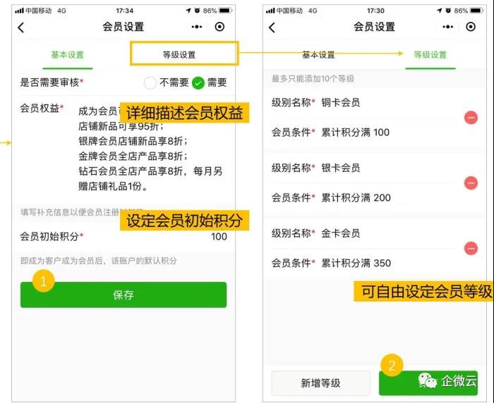 ④ 自定义会员权益和升级规则