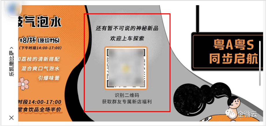 只要有用户进店入座,就能看到桌面上“您好,请扫桌面的二维码领取一张 20 元优惠券”的提醒。因为有优惠,大部分的用户都会去扫二维码,其实也就是进入了企业微信的客户群。
