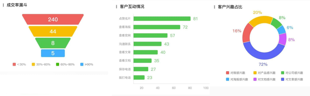 另一方面,企微云后台雷达也能提供整体营销过程数据、营销效果数据、客户消费偏好等,为企业完善受众群体画像,帮助管理者合理制定业务发展策略。