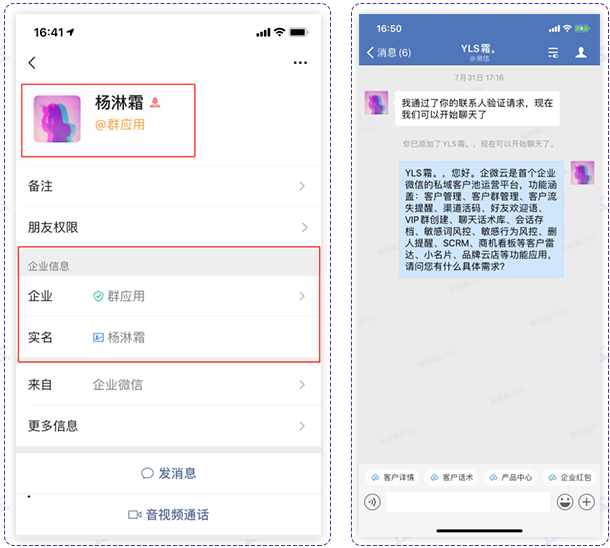通过微信对接客户,没有官方统一的企业形象,还可能出现不法分子假冒诈骗等情况。企业微信自带官方身份认证,帮助你与用户快速建立信任。还能配置好友欢迎语,当用户成为好友时,自动发送欢迎语,破冰沟通。