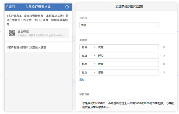 个人微信服务客户主要依靠手动回复,效率低。企业微信快捷回复功能,能配置回复话术,当客户咨询重复问题时通过话术快捷回复,极大提高效率。