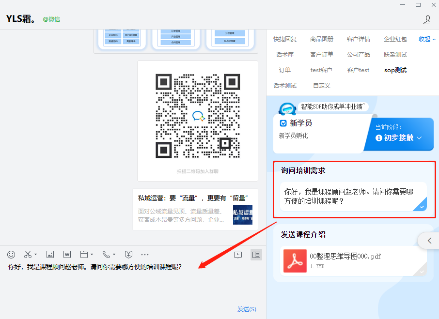 当客户到了对应SOP阶段,我们可通过企业微信聊天侧边栏查看SOP内容并执行。