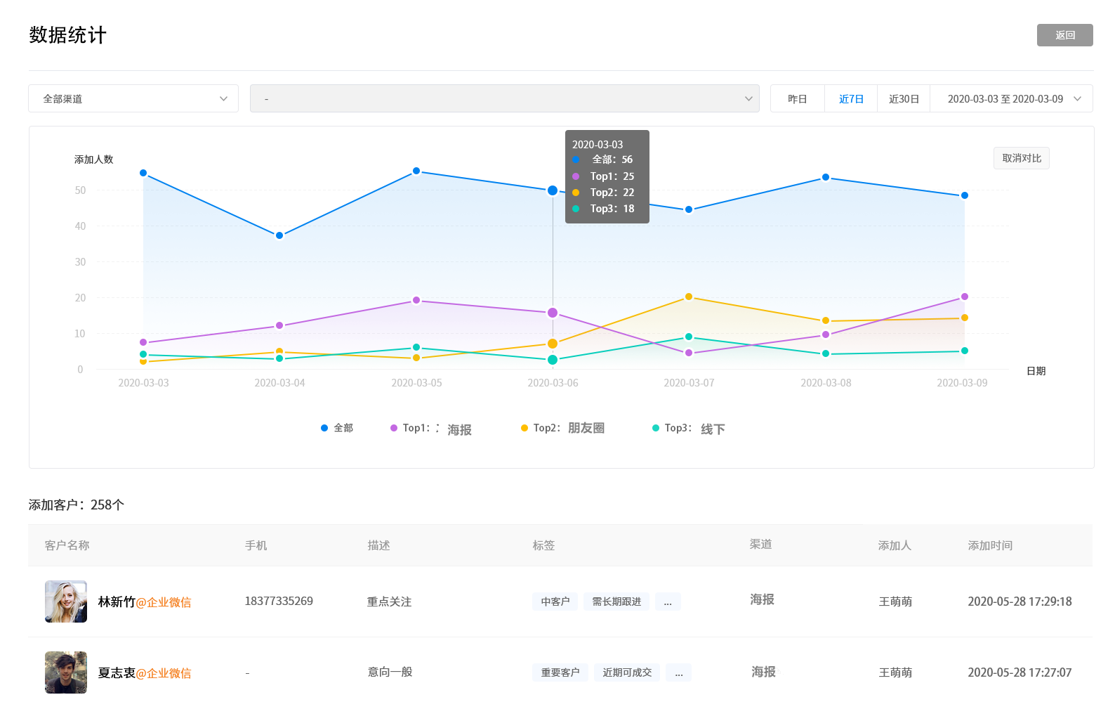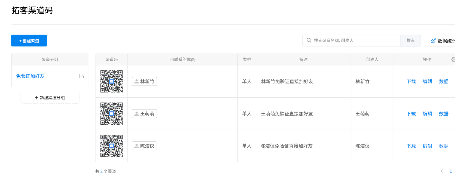 代理人可通过企微云·企微管家的【渠道活码】生成带参数的活码,活码长期有效,可添加在海报、线下物料,引导潜在客户扫码加为好友。保险代理人可以通过获客数据了解每个渠道的获客情况,调整成本投入。平安保险也可以了解到每个保险代理人的获客情况,对其获客业务的拓展提供相应的支持。