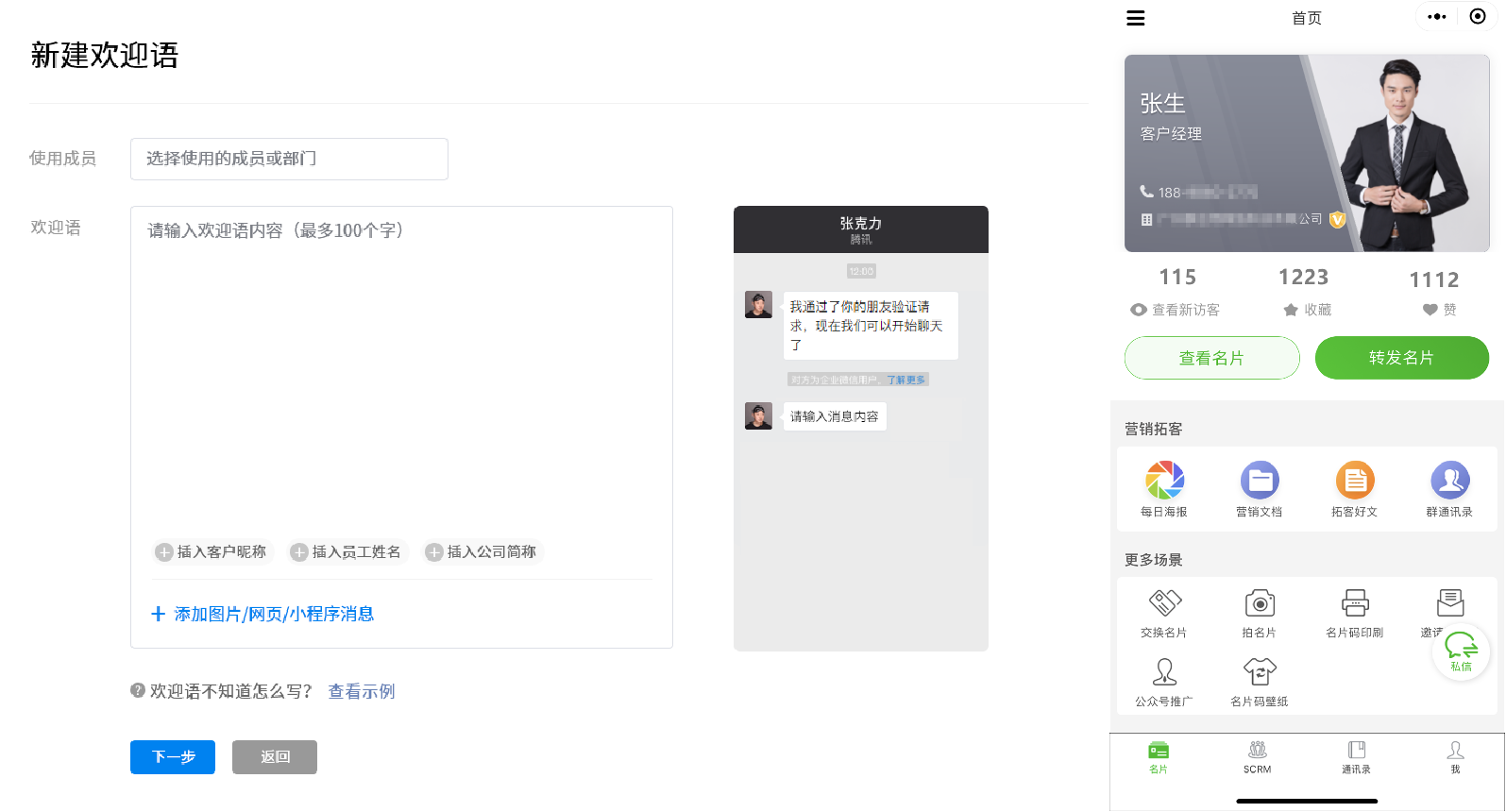 渠道活码可配置好【好友欢迎语】,将欢迎文字、保险优惠信息添加成为欢迎语,自动发送给新添加的客户。配合企业认证的小名片,在添加好友初期树立专业形象,帮助代理人有效开展业务。