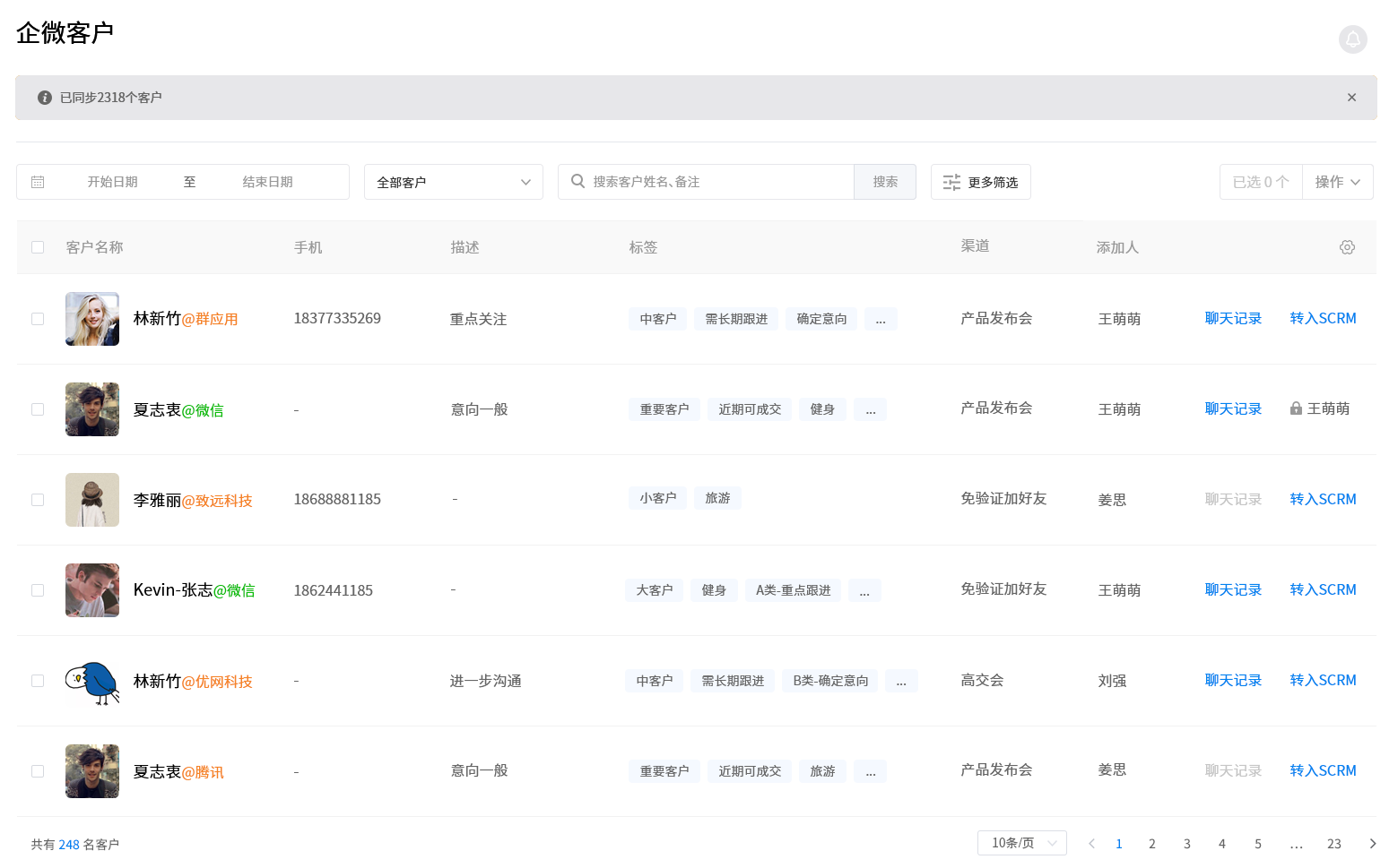 以往,平安保险代理人都是通过个人微信添加客户,代理人离职则会导致保险公司客户资源的流失。除了内部人员的协同,企微云【企微管家】实现将平安保险外部、小程序、微信号客户同步至企业微信客户池,将分散的客户资源集成在企业微信中,实现全渠道的客户管理。