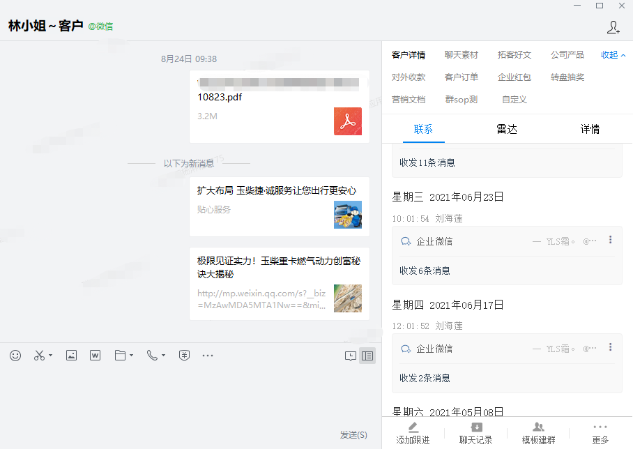 玉柴集团借助企业微信,开展了客户营销与运营的数字化进程,如何赋能员工精细化运营客户,提高业绩转化率,是重要的提效方向。结合WeSCRM企微云,玉柴集团能进一步提升客户运营能力。