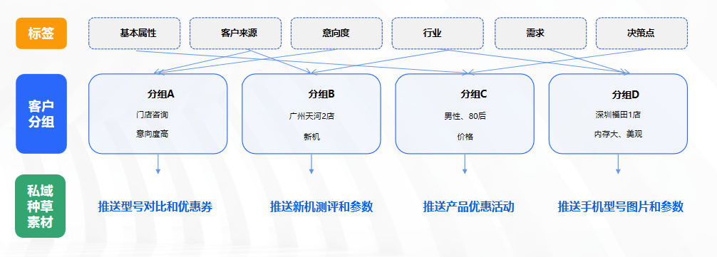 通过给客户持续分享新机测评、购机优惠等有价值的内容,vivo能与客户持续建立品牌连接和互动,让客户持续关注vivo,有购机需求时就能想到vivo。但vivo门店分散在全国不同区域,客户需求各不相同,如何将营销内容精准推送给客户,提升销售转化率呢?
