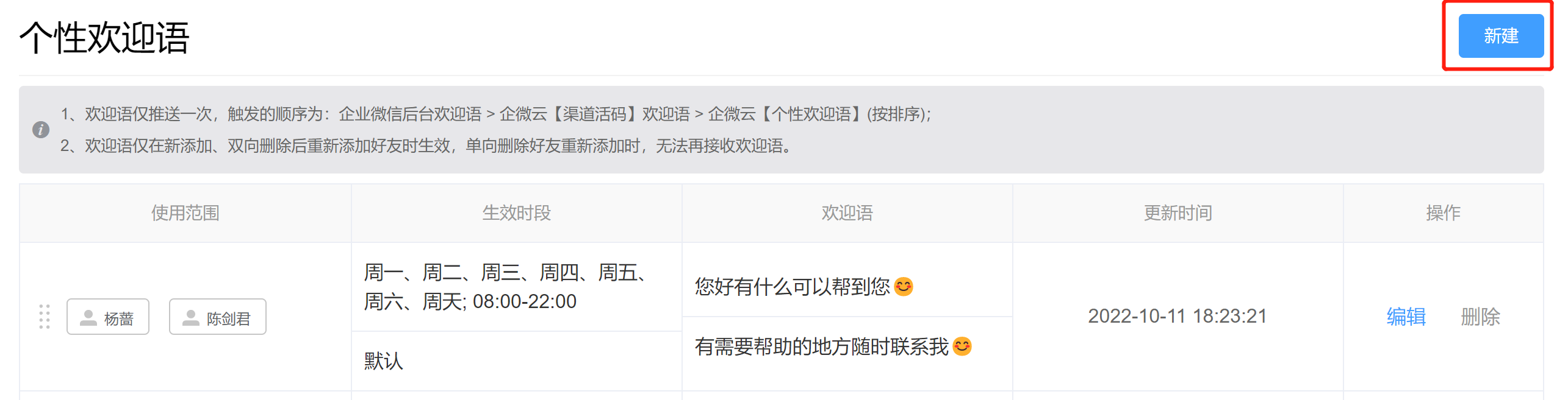 此外还支持设置分时段欢迎语,不同时段客户添加好友时,系统推送不同的欢迎语内容。