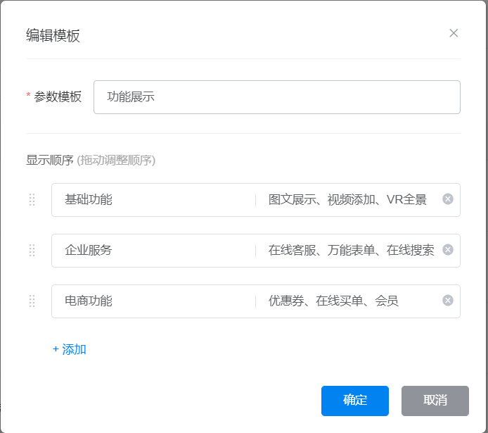 2、产品参数:点击右上方【产品参数】,可自定义产品参数模板。