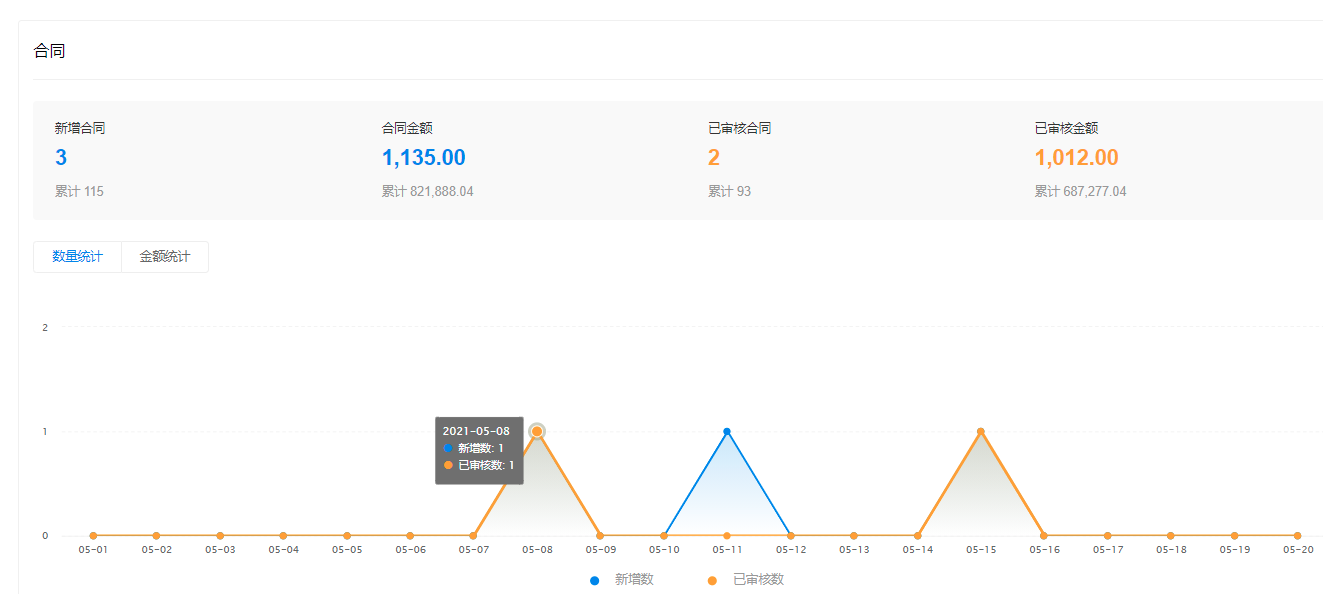 统计合同、收款等经营数据,管理者可全面洞察企业业务情况。