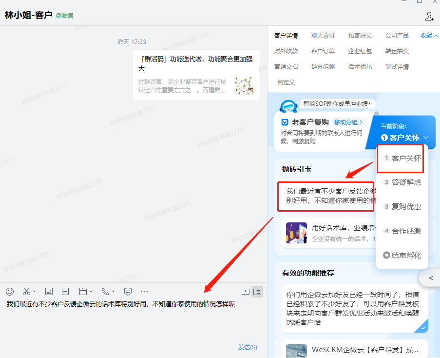 选择客户所处的SOP阶段,并选择相应内容推送。