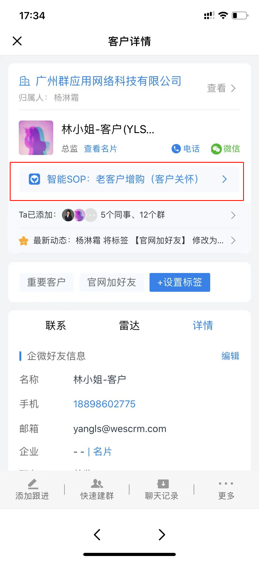 方式二:在企业微信手机端,点击【客户详情】-【智能SOP】,查看并执行