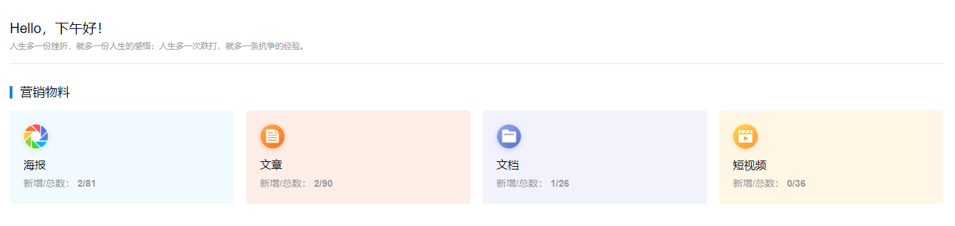 【营销物料】可查看企业营销物料新增数据,包括海报、文章、文档等。