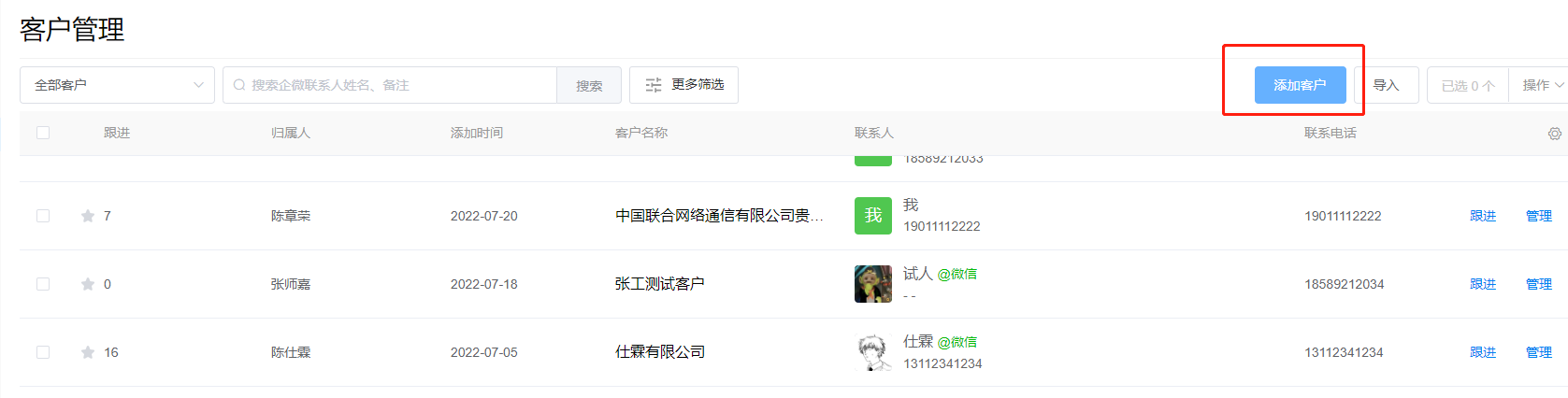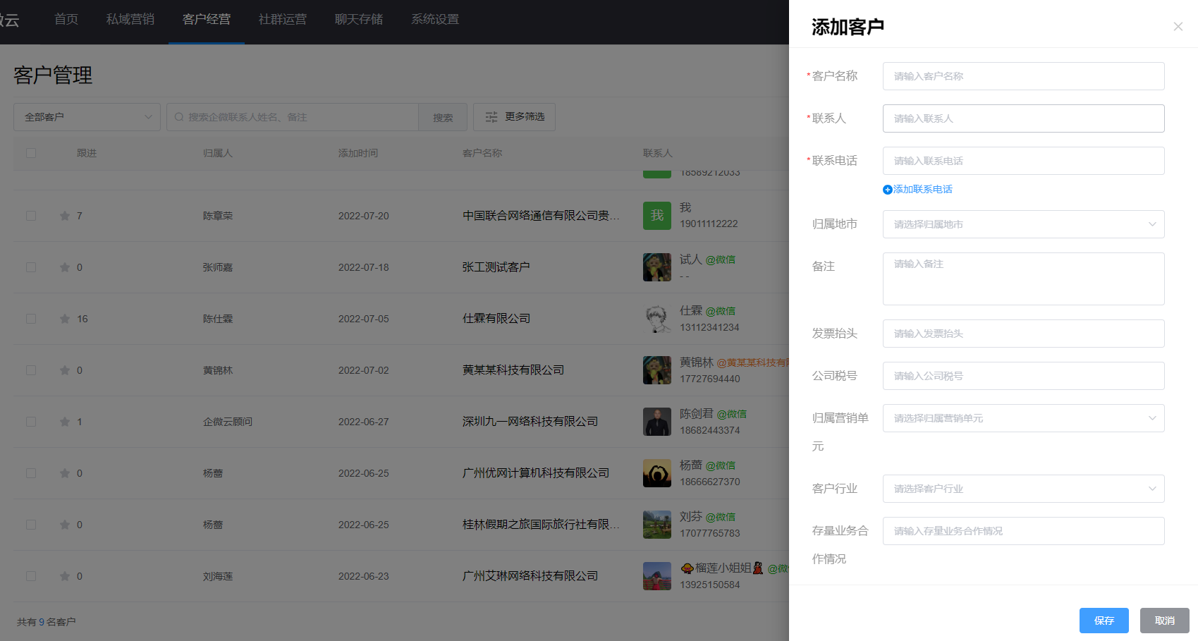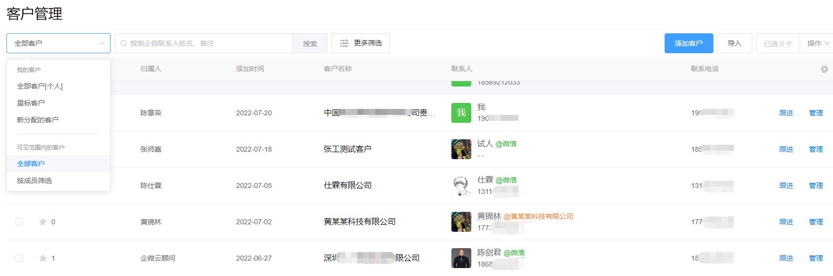 操作路径:WeSCRM企微云后台-客户经营-客户-客户管理