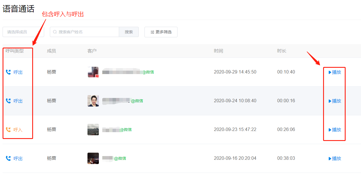 开通会话存档(企业版),支持存档企业成员语音通话记录,在企微云后台即可播放。