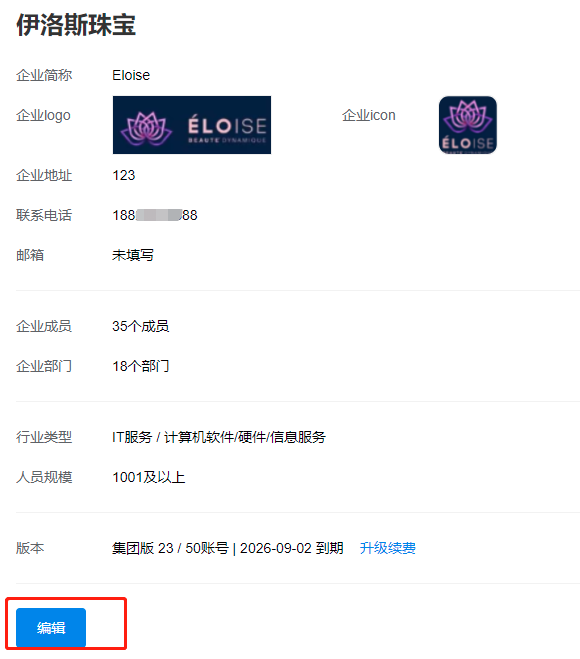 操作路径:系统设置-企业管理-企业信息-编辑-填写信息-确认