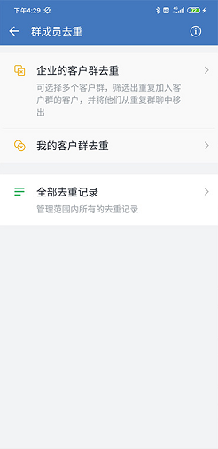 新版本中,群主可筛选出重复加入客户群的客户,按需移出群聊。企业也可统一筛选,由群主确认后移出。客户去重,一方面可以提升客户体验,另一方面减少不必要的新群,减轻运营负担。