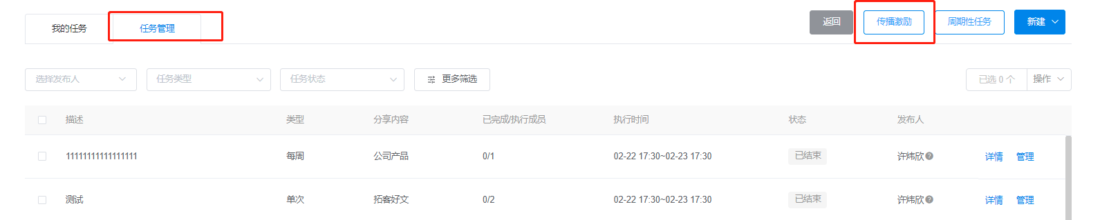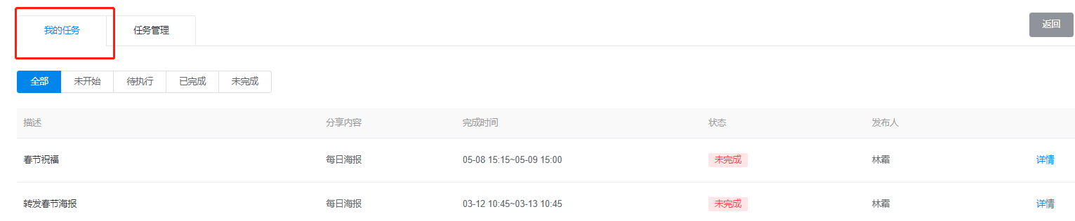 任务管理成员可在【任务管理】中查看任务列表,包括任务详情、执行情况、任务状态等内容。