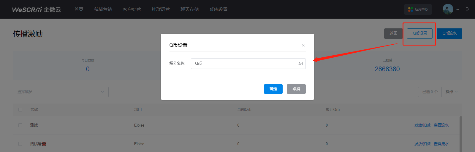 在【营销任务】-【任务管理】-【传播激励】界面,点击【设置】,即可设置奖励名称,以下以设置为“Q币”为例。
