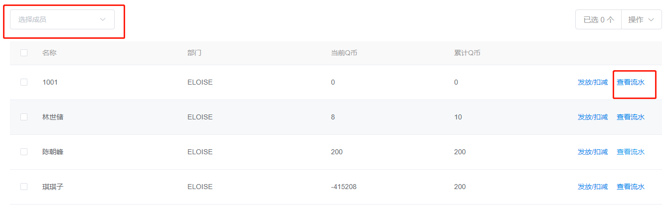 选择某个或多选成员,可进行奖励发放/扣减操作。
