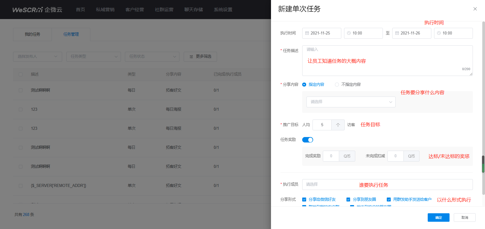 ②设置营销任务的详细内容。