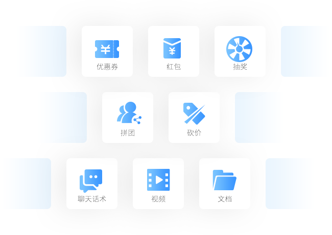 场景化的销售话术,彻底解决一线销售“不知道客户怎么想”、“不知道该怎么说”的两大核心痛点。销售人员在与客户沟通的过程中可一键调用聊天话术,轻松的客户主动沟通;快捷使用优惠券、红包、抽奖等促单工具,完成销售的临门一脚